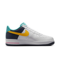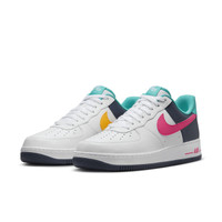 Comfortable, durable and timeless—it’s number 1 for a reason. The classic ‘80s construction pairs with bold details for style that tracks whether you’re on court or on the go. Crossing hardwood comfort with off-court flair, this AF1 pairs smooth overlays with vibrant pops of color for nothing-but-net style. Benefits:Stitched overlays on the upper add heritage style, durability and support. Originally designed for performance hoops, the full-length Nike Air cushioning adds lightweight comfort. Low-cut silhouette adds a clean, streamlined look. Padded collar feels soft and comfortable. Product Details:Foam midsole. Perforations on toe. Rubber outsole. Style: HF4849; Color: White/Thunder Blue/Dusty Cactus/Racer Pink; Size: 7; Gender: Male; Age Group: Adult | Nike Air Force 1 '07 Men's Shoes in White, Size: 7 | HF4849-100