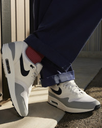 Meet the leader of the pack. Walking on clouds above the noise, the Air Max 1 blends timeless design with cushioned comfort. Sporting a fast-paced look, wavy mudguard and Nike Air, this classic icon hit the scene in ‘87 and continues to be the soul of the franchise today. Benefits - Plush and comfortable, Max Air cushioning has just the right amount of support. - Waffle outsole with flex grooves provides traction that's flexible and durable. Product Details - Shown: Platinum Tint/Wolf Grey/Dark Obsidian - Style: FD9082-002