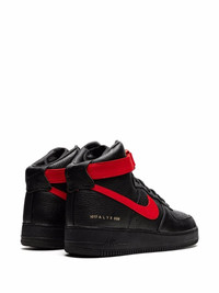 x 1017 Alyx 9SM Air Force 1 High sneakers Alyx founder, Matthew M. Williams, has teamed up with Nike for a new version of the Air Force 1 High. This black version is crafted from leather and features lasered Alyx branding near the heel and custom dubraes and tongue tags. But, what stands out the most, is the signature buckle on the adjustable support strap. Highlights - Black - Leather - Signature swoosh logo detail - Perforated detailing - Round toe - Front lace-up fastening - Ankle strap - Branded insole - Rubber sole - These styles are supplied by a premium sneaker marketplace. stocking only the most sought-after footwear, they source and curate some of the most hard to find sneakers from around the world. Imported Composition Sole: Rubber 100% Outer: Leather 100% Lining: Fabric 100%