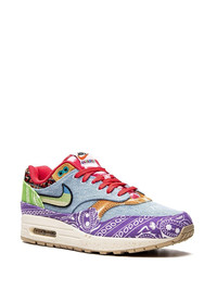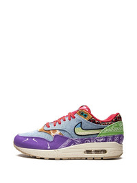 x Concepts Air Max 1 SP "Wild Violet - Special Box" sneakers Nike has teamed up with Concepts for a new version of the iconic Air Max 1. This "Paisley" version features a mixture of premium materials like denim, canvas, and fur. Here, purple and green paisley bandana print lands on the mudguard and around the heel while denim hits the panels and toe box, and red velvet accents adorn the tongues and laces. Imported Composition Outer: Polyester 100% Sole: Rubber 100% Lining: Fabric 100%