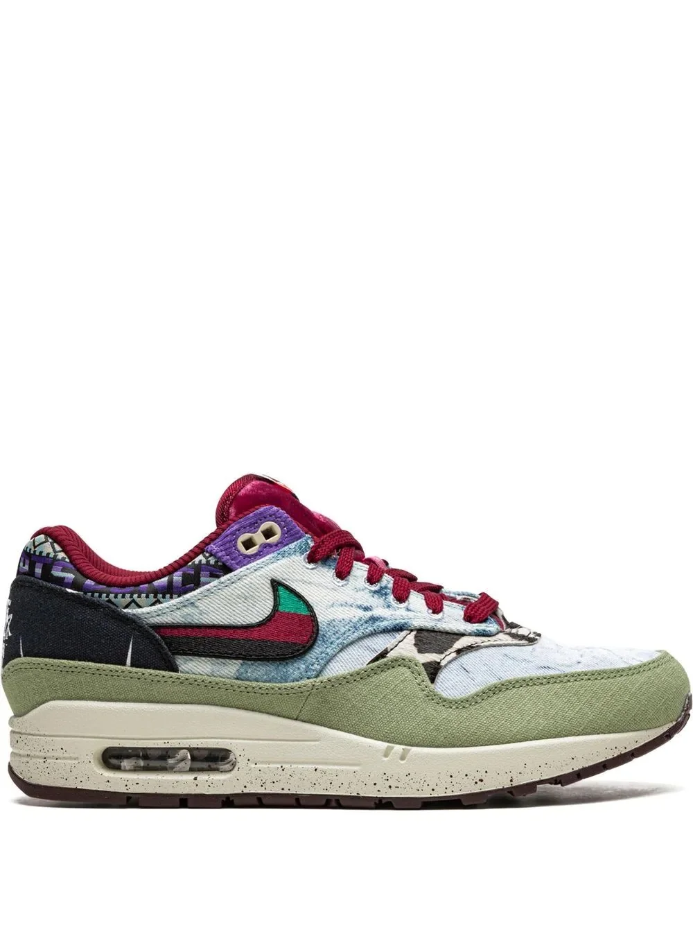 x Concepts Air Max 1 "Mellow" sneakers Designed in partnership with Concepts, these Nike Air Max 1 sneakers arrive with a fun and playful design. The pair is decorated with a patchwork of different materials and patterns - including denim, camouflage, floral, and bandana prints - and highlighted by a three-tone Swoosh on the sides. Underneath, the usual rubber sole with Max Air cushioning adds comfort to the design. Highlights - Olive green/multicolour/sail - Canvas - Signature swoosh logo detail - Panelled design - All-over graphic print - Logo patch at the tongue - Round toe - Front lace-up fastening - Rubber sole with max air cushioning - These styles are supplied by a premium sneaker marketplace. stocking only the most sought-after footwear, they source and curate some of the most hard to find sneakers from around the world. Imported Composition Outer: Canvas 100% Sole: Rubber 100% Lining: Fabric 100%