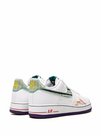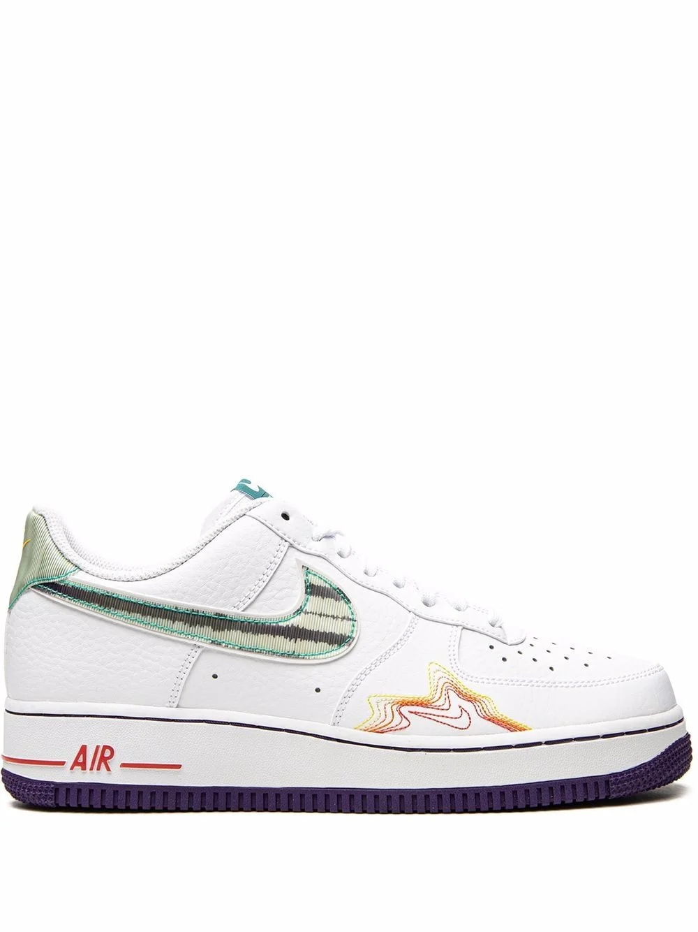 x De’Aaron Fox Air Force 1 Low "Pregame Pack" sneakers The De’Aaron Fox x Nike Air Force 1 Low “Pregame Pack” is part of a special collection of sneakers from Nike and Jordan Brand that celebrates the pregame rituals of basketball’s stars. Alongside Ben Simmons, Luka Doncic, and Brittany Griner, Fox, is one of the most enigmatic hoopers in the world. These sneakers are inspired by his ritual of listening to music, it features a white leather base with colourful sound wave detailing on both the forefoot, embroidered Swoosh on the mid-panel, heel, and purple insole. To finish, the retro-inspired Nike Hoops branding appears on the turquoise tongue tab while a red 'Air' logo on the heel contrasts the white rubber midsole. Highlights - White - Faux leather - Signature swoosh logo detail - Logo print to the rear - Embroidered motif - Round toe - Front lace-up fastening - Logo patch at the tongue - Branded insole - Rubber sole - These styles are supplied by a premium sneaker marketplace. stocking only the most sought-after footwear, they source and curate some of the most hard to find sneakers from around the world. Imported Composition Other fibres 100%