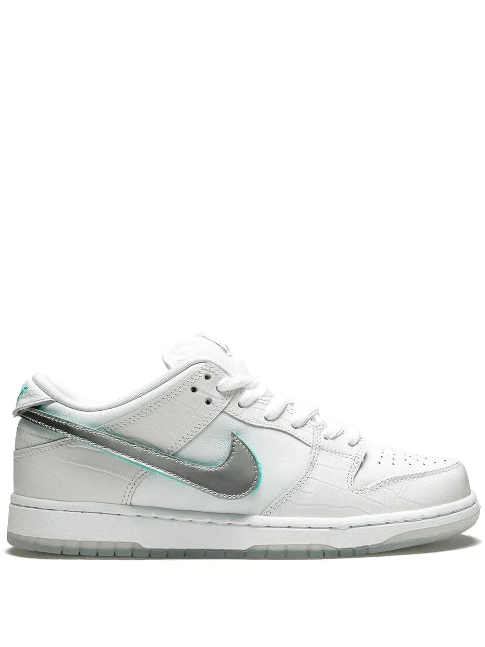 x Diamond Supply Co. SB Dunk Low Pro OG QS "White" sneakers Highlights - White - Leather - Front lace-up fastening - Branded heel counter - Signature swoosh logo detail - Logo patch at the tongue - Perforated toebox - Round toe - Signature air cushioning - Rubber outsole - These styles are supplied by a premium and authenticated sneaker marketplace. stocking only the most sought-after footwear, they source and curate some of the most hard to find sneakers from around the world. Imported Composition Calf Leather 100%