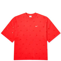 Combining athleisure with high fashion, Nike x Jacquemus come together for an exclusive collaboration once again. Cut from plush heavyweight cotton, this tee is designed with a slightly dropped shoulder effect for all day comfort. In a laser cut, the label’s signature swoosh features all over for a bold sense of brand identity. - 100% Cotton - Crewneck - Ribbed Trims