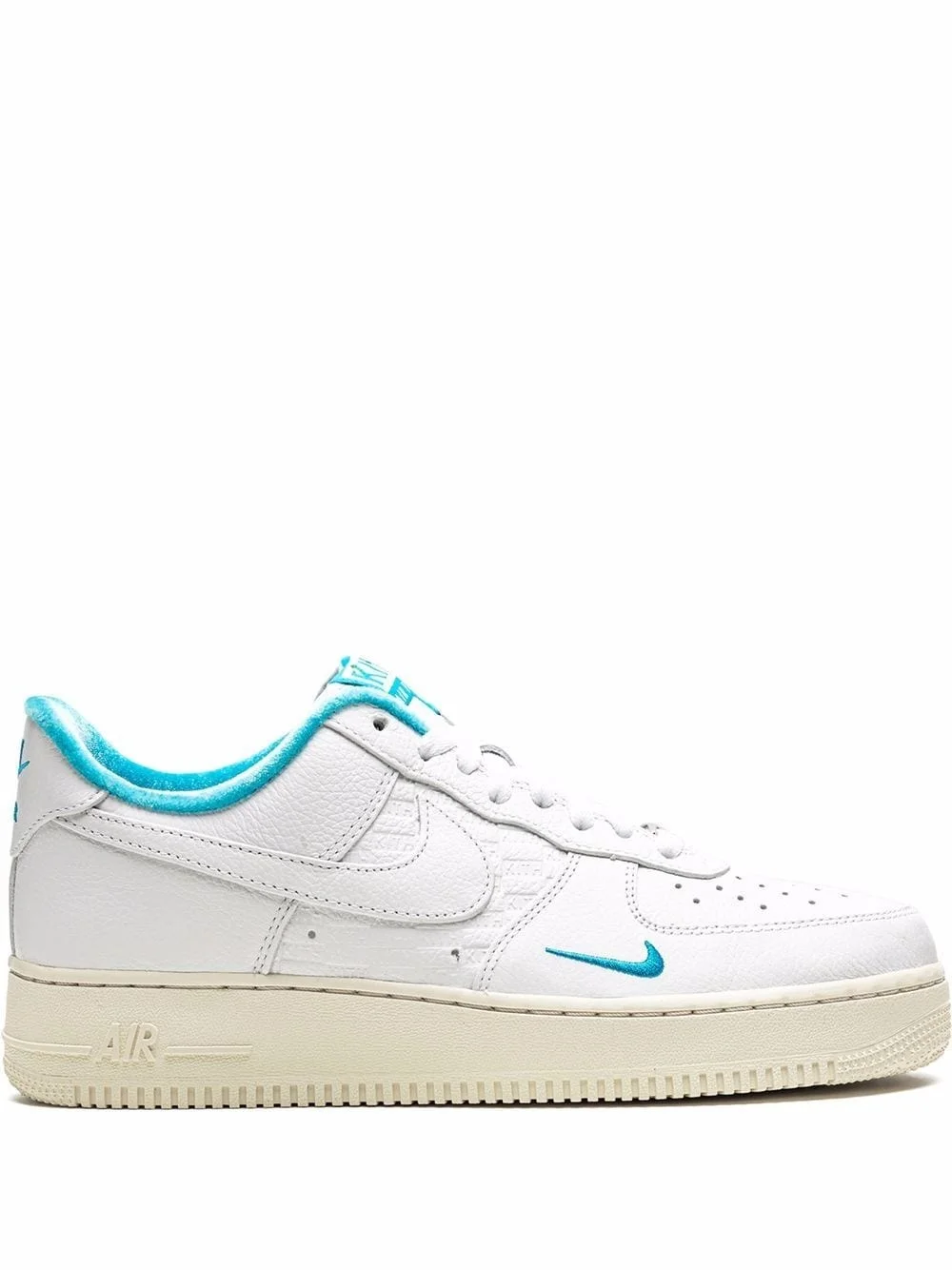 x Kith Air Force 1 Low "Hawaii" sneakers Ronnie Fieg teamed up with Nike for giving a little spin to their classic silhouette. The pair features a white leather upper with blue detailing and KITH logos debossed into the centre side panel and a Swoosh logo on the heel and side toe box, while a rubber sole completes the design. Imported Composition Leather 100%