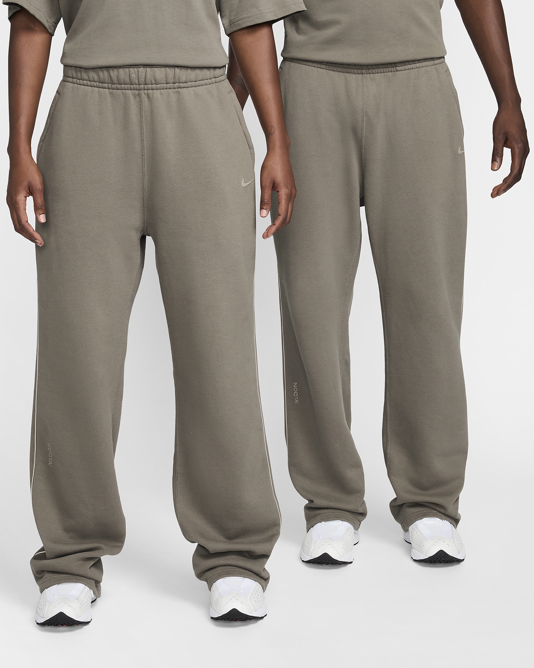 These premium open-hem sweatpants feature a new exclusive fleece that's soft and structured. Pants include reflective piping and zippered pockets. Benefits - Designed to feel relaxed through the seat and thighs for a casual fit you can dress up or down. - An elastic waistband and internal drawcord provide a comfortable, custom fit. Product Details - NOCTA-branded zippers at pockets - Body: 82% cotton/18% polyester. Pocket bags: 100% cotton. - Machine wash - Imported - Shown: Olive Grey/Moon Fossil/Moon Fossil - Style: FZ4675-040 SIZE & FIT Standard fit: easy and traditional