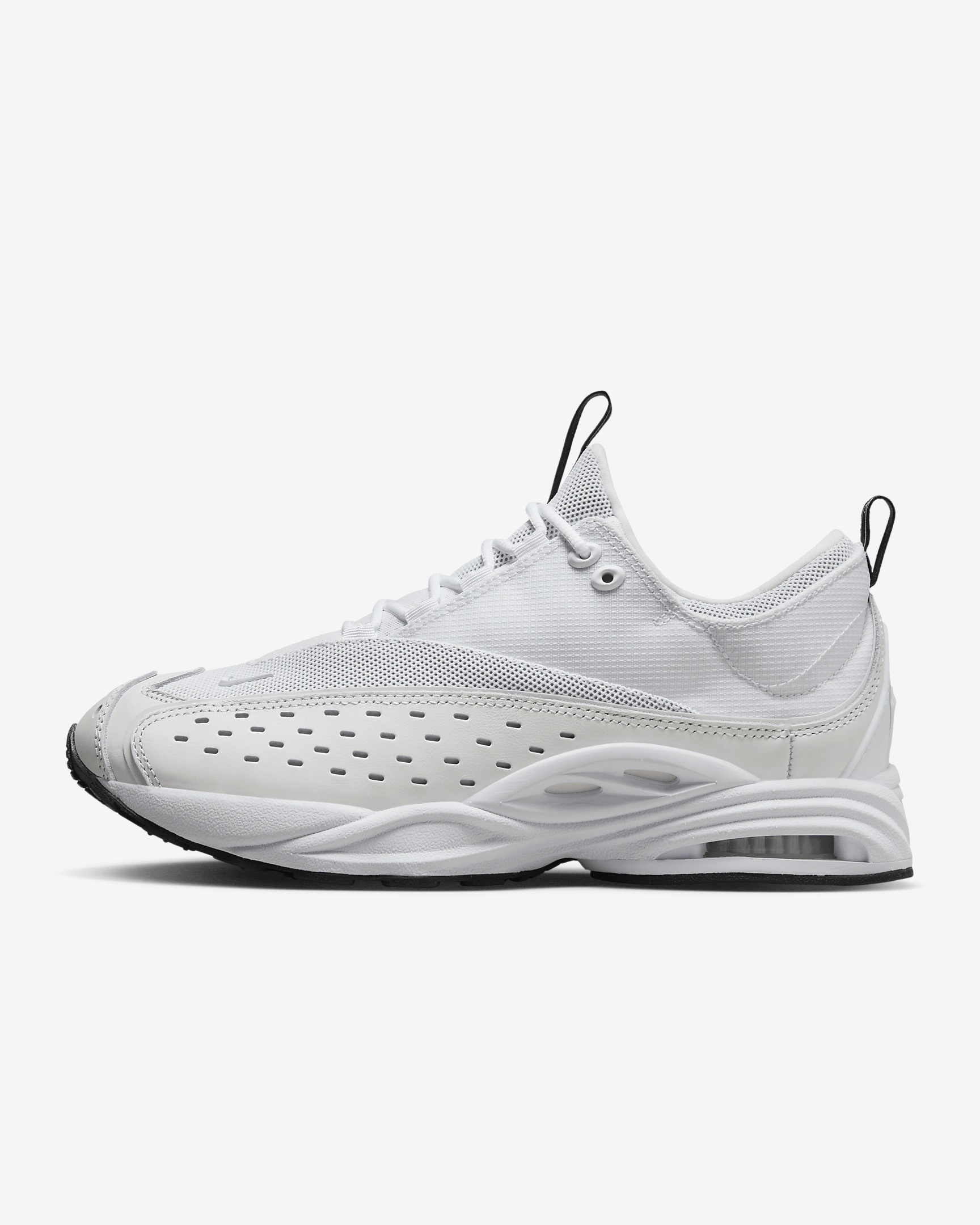 The NOCTA Zoom Drive takes on a new lightweight design—using innovation, technology and premium materials—that elevates the Nike original. Textile and leather combine in the upper. The Zoom Air unit in the heel exposes Air you can feel. And reflective details light up your look. Benefits - Upper combines textile and leather for a more breathable and lightweight feel. - Inner sleeve creates a sock-like fit. - Snappy and responsive, Zoom Air cushioning helps provide a quick-off-the-ground sensation. Product Details - Additional laces in box - NOCTA North Star logos - Shown: White/Summit White/Black/White - Style: DX5854-100