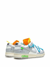 Dunk Low "Lot 02" sneakers Virgil Abloh and Nike have teamed up once again for a new iteration of the Dunk Low. In a grey and white leather construction and equipped with a Swoosh on the sides, the pair comes with overlaid rope lacing system from past Off-White™ x Nike Dunk Low collaborations. Also, to finish the look, there's signature text on the lateral quarter and a black Nike logo print on the heel. Imported Composition Leather 100%