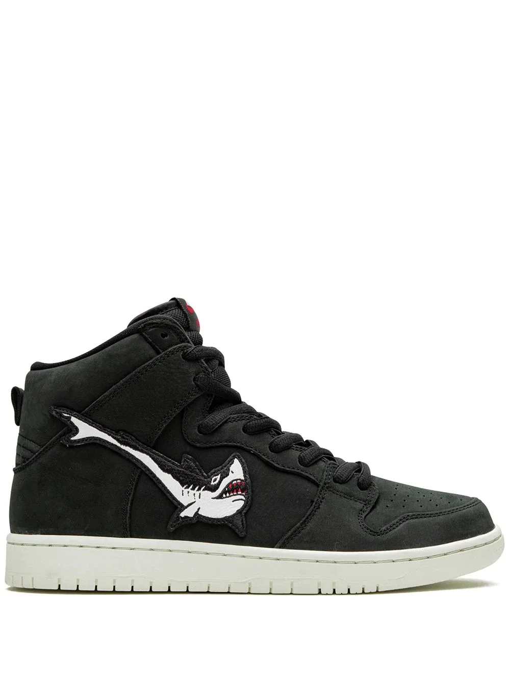 x Oski SB Dunk High "Shark" sneakers Highlights - Black - Leather - Front lace-up fastening - Pull-tab at the heel - Applique detail - Signature swoosh logo detail - Logo patch at the tongue - Perforated toebox - Round toe - Rubber outsole - These styles are supplied by a premium and authenticated sneaker marketplace. stocking only the most sought-after footwear, they source and curate some of the most hard to find sneakers from around the world. Imported Composition Other fibres 100%
