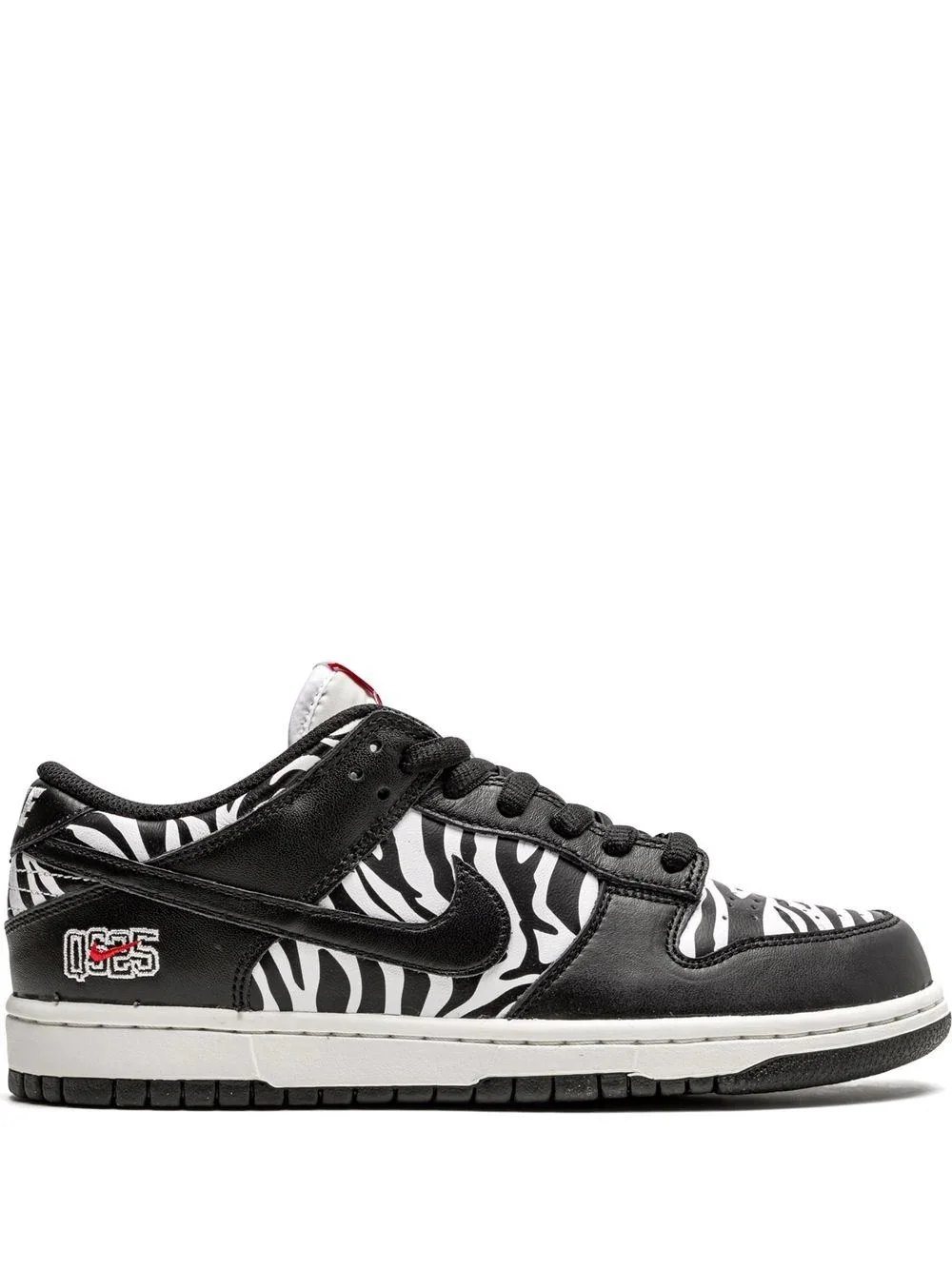 SB Dunk Low OG QS "Quarter Snacks" sneakers These Nike x Quartersnacks Dunk Low SB 'Little Debbie’s Zebra Cakes' represent one of many Dunk collaborations celebrating the 2021 Summer Olympics in Tokyo - where skateboarding makes its debut as an Olympic sport. This sneaker takes inspiration from Little Debbie Zebra Cakes, the snack of choice for skaters on the go. The leather upper features black-on-white zebra stripes on the toe box, quarter panel and collar. Solid black leather overlays wrap around the forefoot and heel, the latter featuring embroidered Quartersnacks branding on the lateral side. Highlights - Black/white - Leather - Zebra print - Signature swoosh logo detail - Embroidered logo to the rear - Round toe - Front lace-up fastening - Branded insole - Rubber sole - These styles are supplied by a premium sneaker marketplace. stocking only the most sought-after footwear, they source and curate some of the most hard to find sneakers from around the world. Imported Composition Leather 100%
