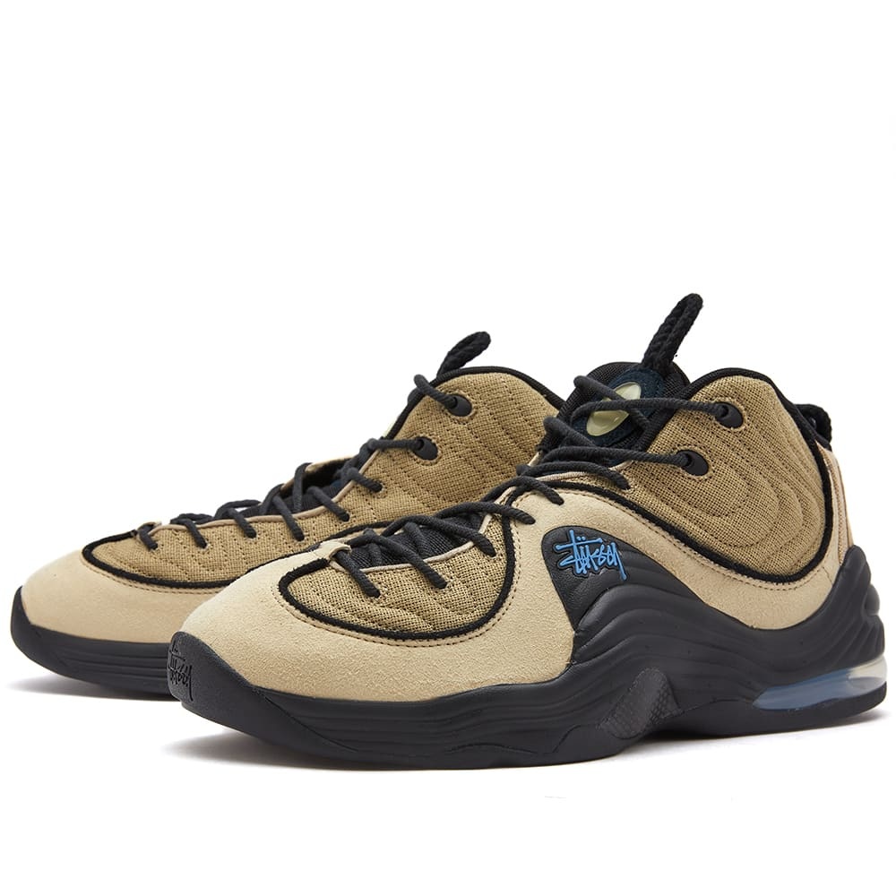 Nike and Stussy team up once again this season to transform an early ‘90s basketball icon, the Air Penny 2. Built with hemp, suede, and leather uppers - in earthy-tones of green and black - they’re detailed with iconic Stüssy script on the upper’s lateral, in blue, and show off a sculpted foam midsole. - Textile Uppers - Rubber Outsole - Style Code: DX6934-200