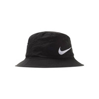 Made in collaboration between Nike and Stussy for SS20, this bucket hat features signatures of each brand. The hat is rendered in black and decorated with Stussy's name in white embroidery on one side as well as Nike's Swoosh logo on the other.