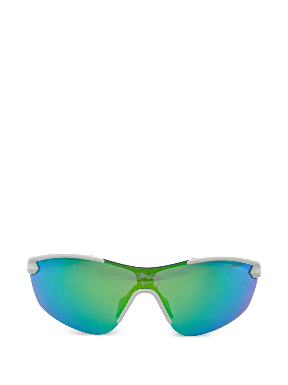 X Stussy Victory Elite sunglasses Highlights - White - Green mirror lenses - Browline frame - Nose pads - These glasses come with a protective case. Imported Composition Acetate 100%