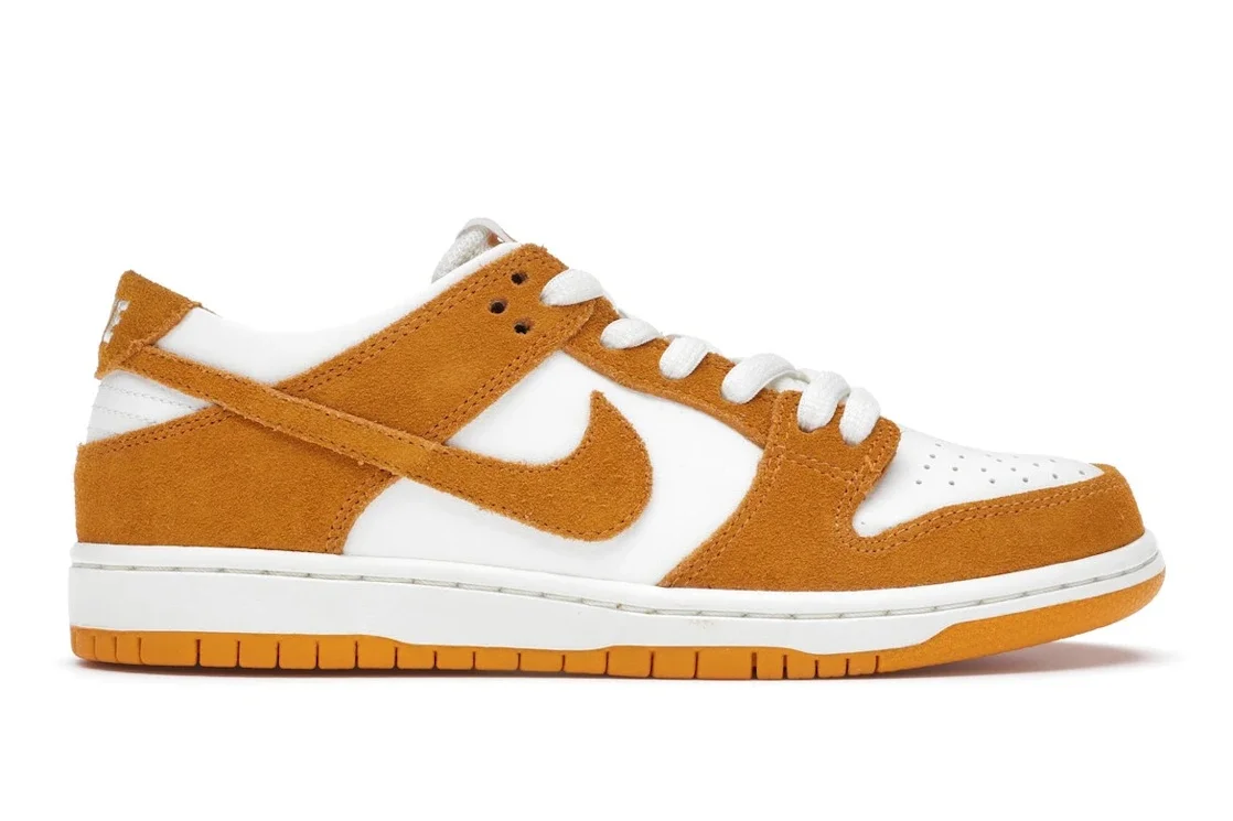 Another clean colorway of the Nike SB Dunk Low. This pair comes in circuit orange and sail. Sporting an orange suede and sail leather upper with a mesh tongue, white Zoom Air cushioned midsole and orange outsole. Reminiscent of classic Dunks of the past, the color-blocking on this pair should appease fans both old and new. Their release date was August 17th, 2017 alongside an SB Blazer Zoom Mid in a similar "Circuit Orange" color scheme. They retailed for $90 and were available in men's sizing. If you're looking for a clean pair of sneakers to kick around in, this Nike SB Dunk Low is perfect for you. It's got just enough orange pop to stand out as well as sail to provide some subtlety. Those who have a pair to sell can list them online today. If you want to buy them, hit up the marketplace. - Style 854866-881 - Colorway Circuit Orange/Circuit Orange-Sail - Retail Price 90 - Release Date 2017-08-17 - Featured false - Product Line Nike SB