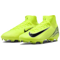 PRODUCT INFORMATION Model No: HF9433-700 Closure: Lacing Release Date: 2024-10-18 Upper Material: Synthetic Leather Thickness: Regular Sole Colorway: Black/Yellow Heel Type: Flat heel Toe Type: Round Toe Upper: Mid Top Sole Material: Rubber Sole Color: yellow Series: Mercurial Sub Series: Mercurial Superfly Nickname: Mad Voltage Pack Occasion: soccer The Nike Mercurial Superfly 10 Pro High FG in Volt Black is a high-performance soccer cleat designed for speed and agility. Its vibrant Volt colorway and sleek black accents make a bold style statement. Flyknit technology provides a snug, sock-like fit for natural movement and control. The high-performance soleplate with specialized studs enhances traction, stability, and acceleration on firm ground. Lightweight construction reduces fatigue, while the Aerotrak zone in the forefoot delivers explosive speed bursts.