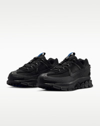 Designed for city conditions, this winterized version of the Vomero is made for wet weather. Durable materials and a rubber mudguard work together to help safeguard your shoes from dirt and puddles. Plus, a chunky midsole gives you a visible boost of comfort and style wherever you wander. Benefits - Layers of textile and suede on the upper create a durable, comfortable fit. - Lace toggle is easy to adjust and features a hook to keep it in place. - Water-repellent finish and rubber mudguard help block the elements so your feet stay dry. - Nike Air Zoom units provide all-day cushioning. - HART (High Abrasion Rubber Tech) outsole uses less rubber compound than our other XDR rubber technologies—without sacrificing durability and abrasion resistance. Less material helps make the outsole lighter and more flexible. Product Details - Pull tabs - Reflective details - Rubber mudguard - Foam midsole - Rubber outsole - Not intended for use as Personal Protective Equipment (PPE) - Shown: Black/Black/Racer Blue/Black - Style: FV2295-002
