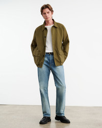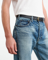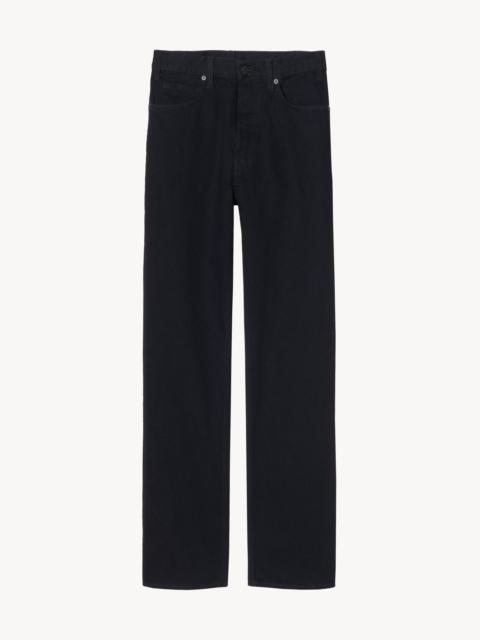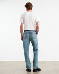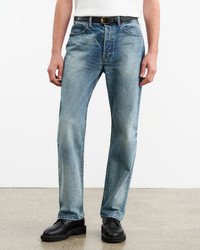 Mid-rise straight leg jean Japanese crosshatch denim. Five pocket details. Zip fly. Shank closure. Belt loops. Designed for a 32" inseam—tailor for a personalized fit. Made in USA COMPOSITION & CARE 100% Cotton Machine wash cold Do not bleach Do not tumble dry Low iron