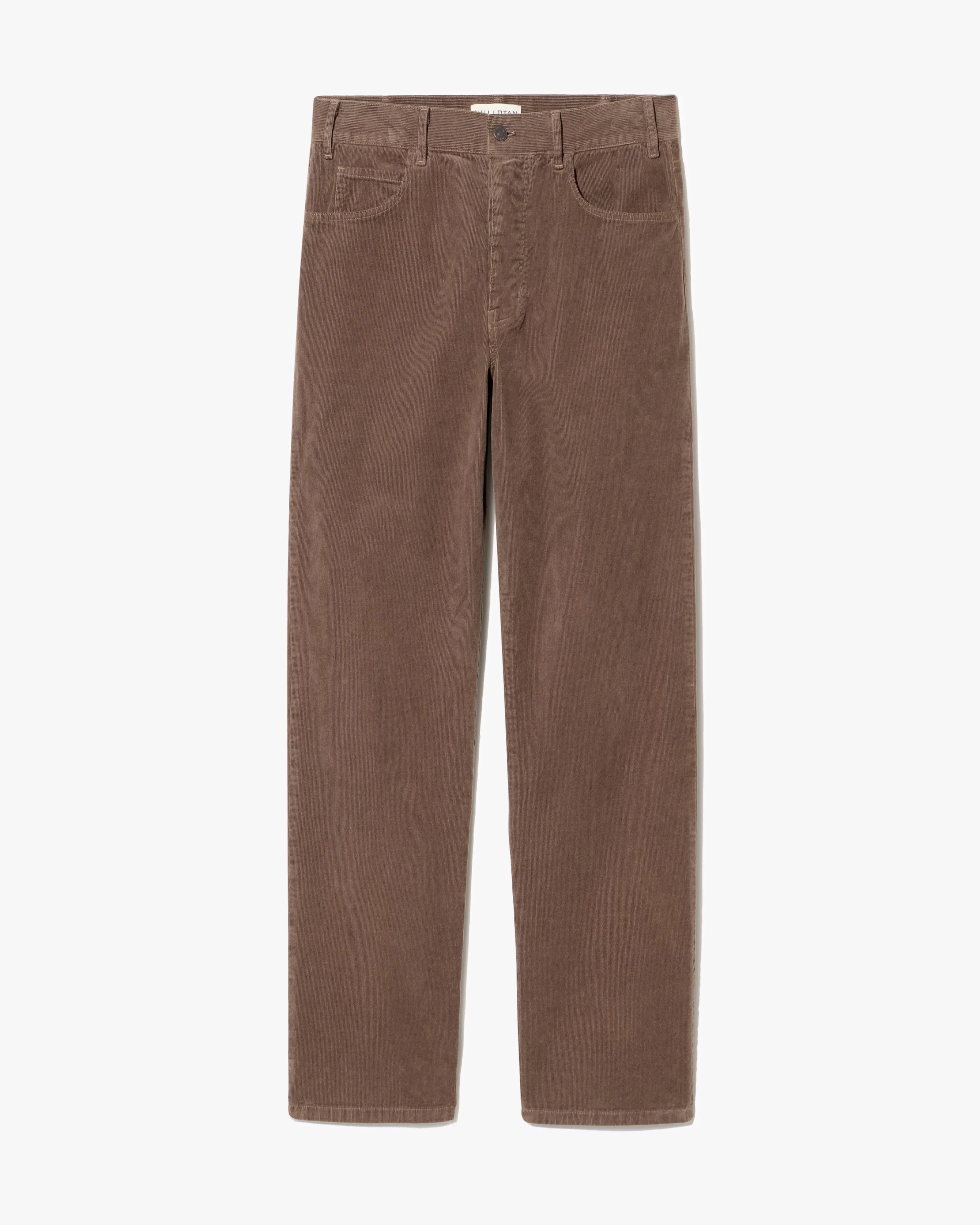 Denim 5-pocket jean in mid-weight Japanese cotton denim. Mid-rise, straight leg. Zip fly with jean shank closure at front. Coin pocket at wearer's front. Patch pockets at back. Garment-dyed & stonewashed for a well-worn appearance. Designed for a 32" inseam. - Made in USA - 93% Cotton 6% Polyester 1% Polyurethane - Machine wash cold - Do not bleach - Tumble dry low - Medium iron - Do not dry clean