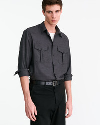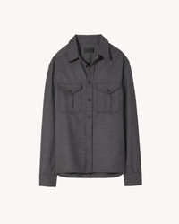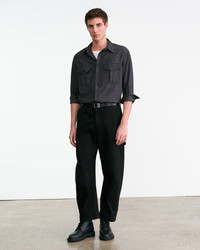 Relaxed long sleeve button up shirt. Straight hem. Side vents. Pleated patch pockets. Made in USA COMPOSITION & CARE 100% COTTON MACHINE WASH COLD DO NOT BLEACH COOL IRON DRY CLEAN RECOMMENDED