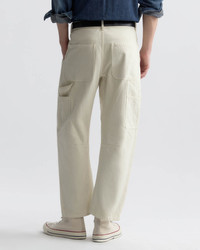 Relaxed barrel leg pant. Side slash pockets. Seam at knees. Hammer loop. Side utility pocket details. Back patch pockets. Zip fly. Horn button closure. Belt loops. Designed for a 27.2" inseam. - Made in USA - 100% Cotton - Machine wash cold - Do not bleach - Line dry - Medium iron - Do not dry clean