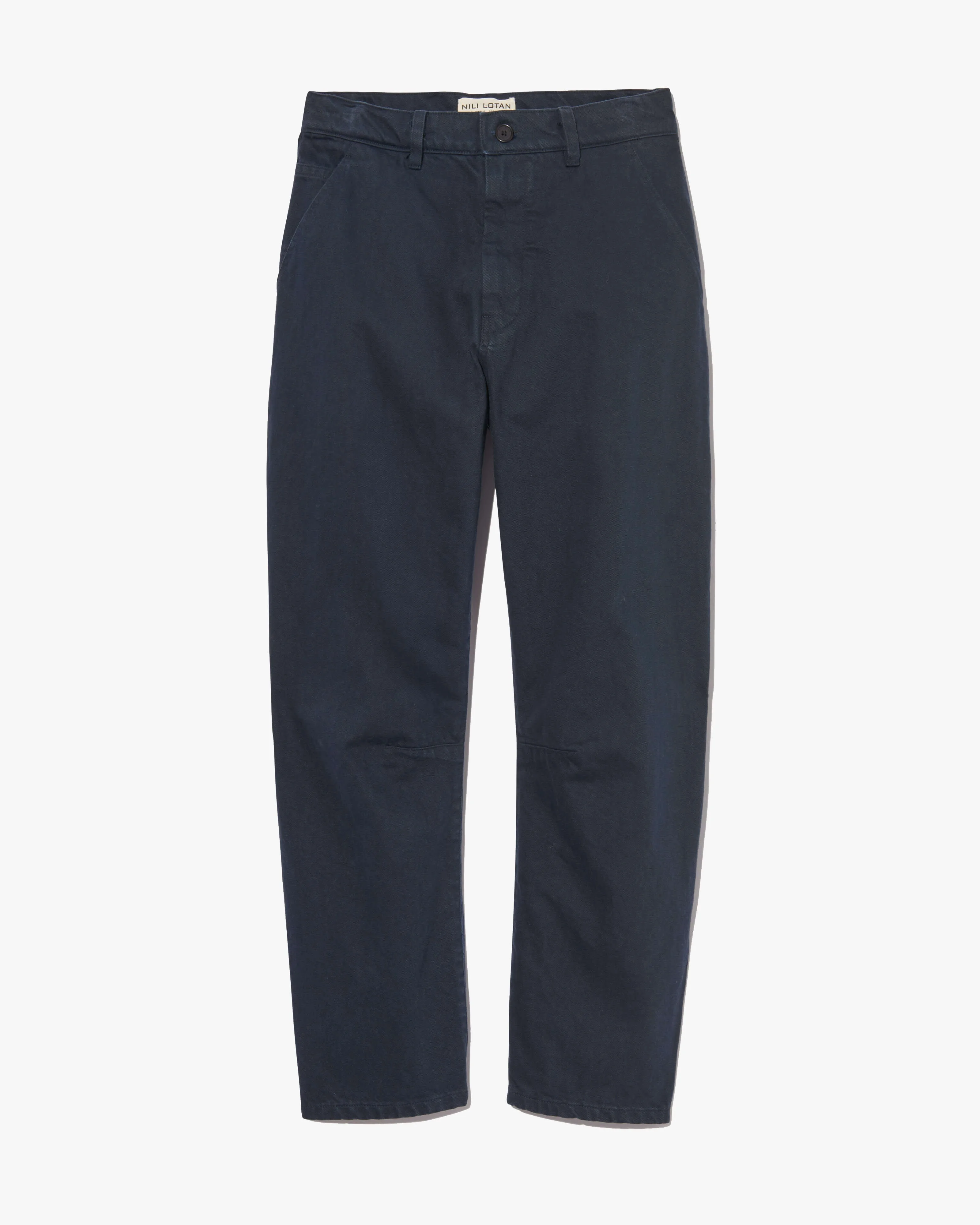Relaxed barrel leg pant in Japanese cotton. Side slash pockets. Seam at knees. Hammer loop. Side utility pocket details. Back patch pockets. Zip fly. Horn button closure. Belt loops. Made in USA COMPOSITION & CARE 100% COTTON MACHINE WASH COLD DO NOT BLEACH TUMBLE DRY LOW MEDIUM IRON DO NOT DRY CLEAN