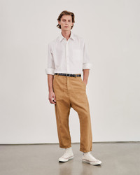Relaxed fit Oxford shirt. Centerfront buttons and placket. Cuff and sleeve front plackets. Singular patch pocket. Structured collar emphasized by removable collar stays. Made in USA SIZE & FIT SIZE M: 29 3/4" front body length, 19" shoulder width, 47" chest circumference, 35" sleeve length from CB neck. COMPOSITION & CARE 100% COTTON / Imported. DRY CLEAN ONLY