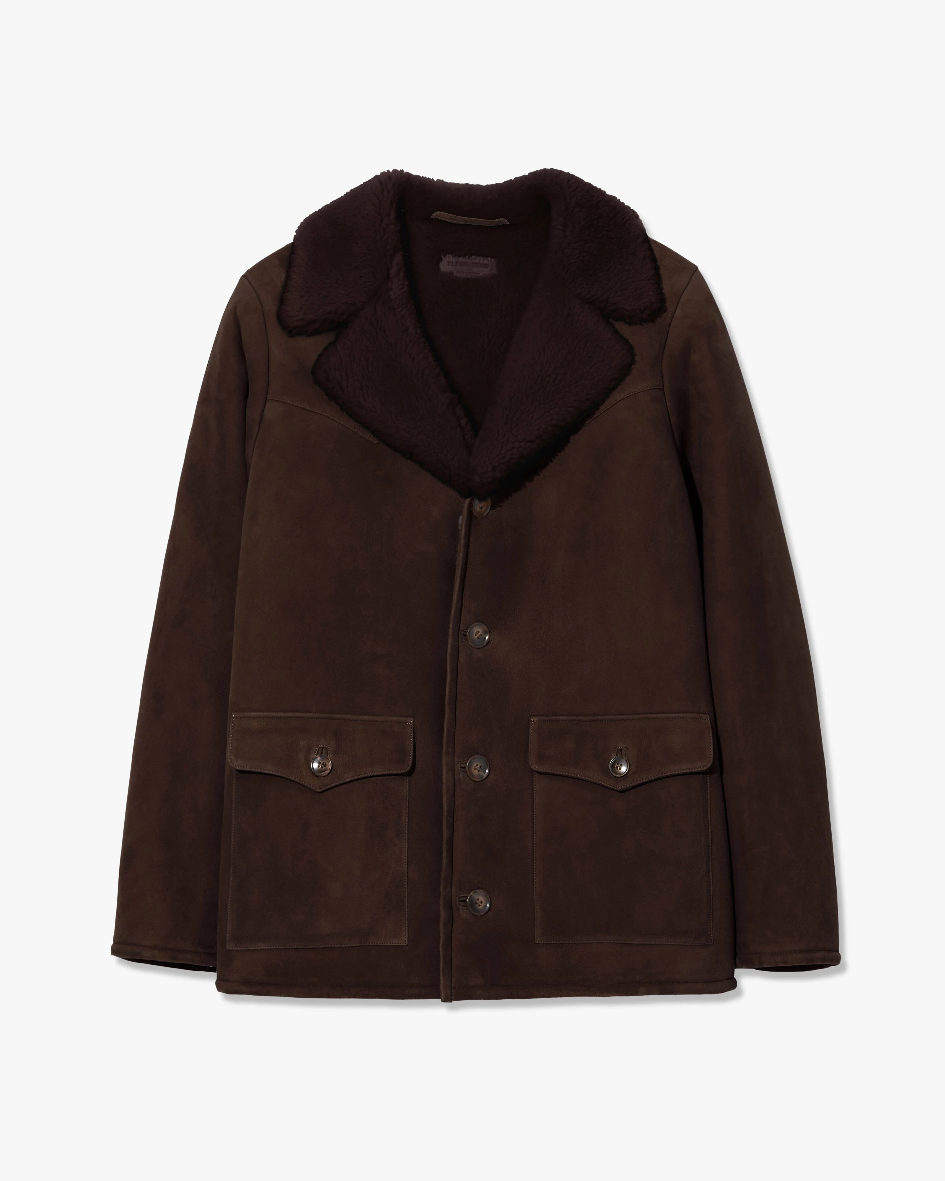 Relaxed suede and shearling coat in Turkish shearling. Patch pockets with flaps. Logo horn buttons. Western seam details. Suede exterior. Shearling interior. COMPOSITION & CARE 100% GENUINE LAMB FUR PROFESSIONAL LEATHER CARE ONLY