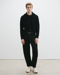 Long sleeve full zip cardigan. Medium weight in half cardigan rib. Relaxed fit. Medium body length. Regular sleeve length. 1x1 rib at cuff and hem. Neck is in half cardigan rib. 2 way logo zip from hem to edge of neck trim. Fashioning at back shoulder and sleeve. - 100% Cashmere - Dry clean only