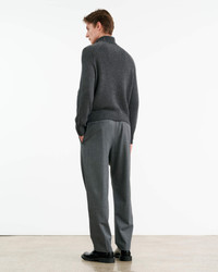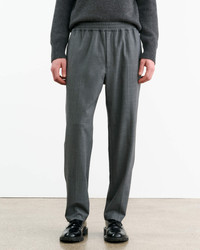 Mid-rise relaxed fit tapered pant in Italian wool. Side slash pockets. Creased detail. Back welt pockets with button closure. Elastic waistband. Zip fly. Interior drawstring. Designed for a 30" inseam—tailor for a personalized fit. Made in USA COMPOSITION & CARE 53% POLYESTER 43% WOOL 4% ELASTANE Dry clean only Low iron