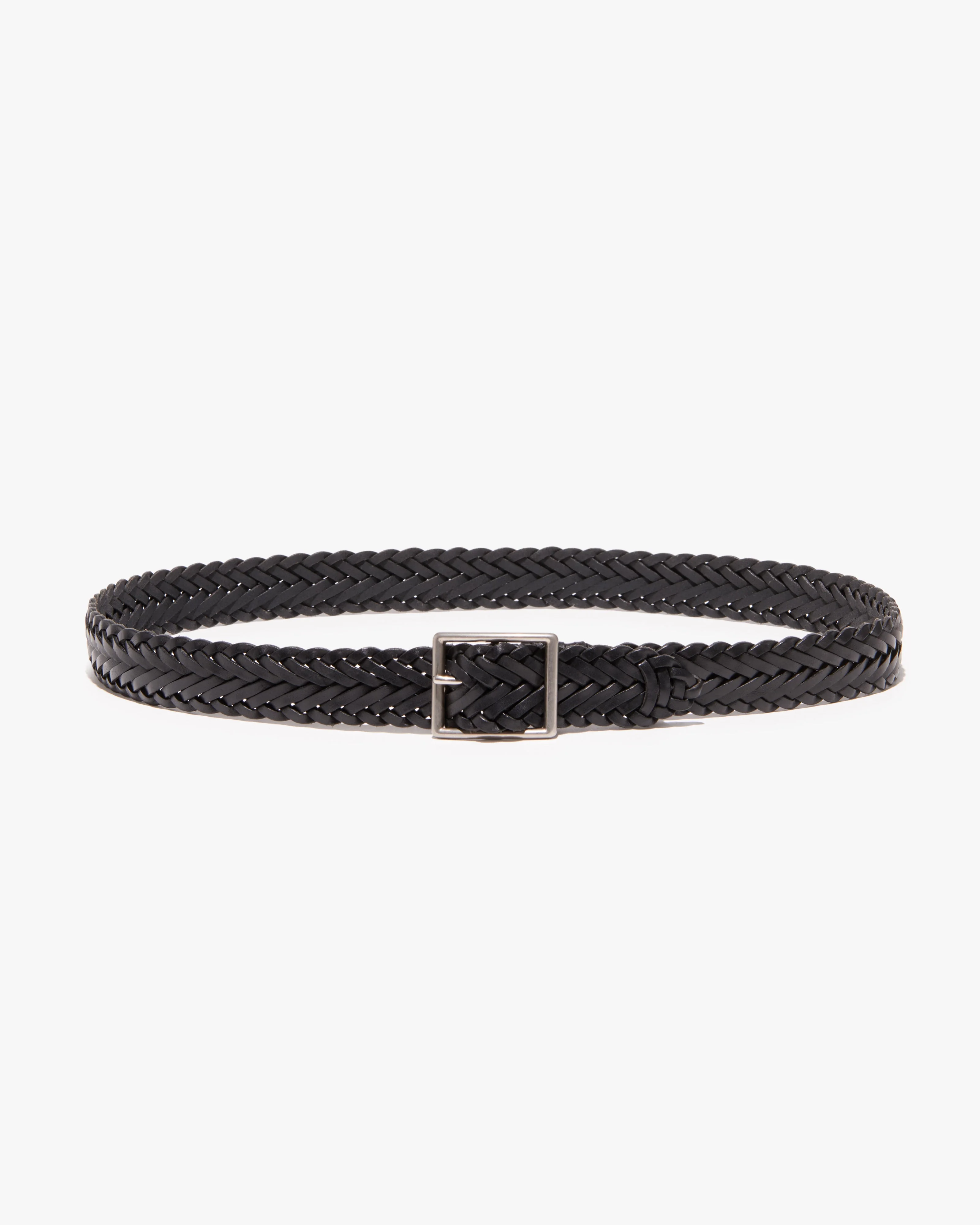 30mm wide belt in hand braided Italian calfskin leather. Custom hardware finish with logo engraving on the back of the buckle. Fully adjustable. - 100% Cowhide Leather - Professional leather care only - Spot clean only