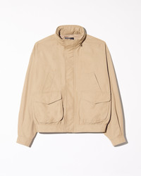 Relaxed bomber jacket. Hidden snap closure. Zip front. Patch pockets. Chest slant pockets. Snaps at cuffs. Cinched waist. Interior chest pocket. Hidden zipper at collar with hood. Not constructed. Fully lined. - Made in USA - 64% Cotton 36% Nylon - Dry clean recommended - Low iron