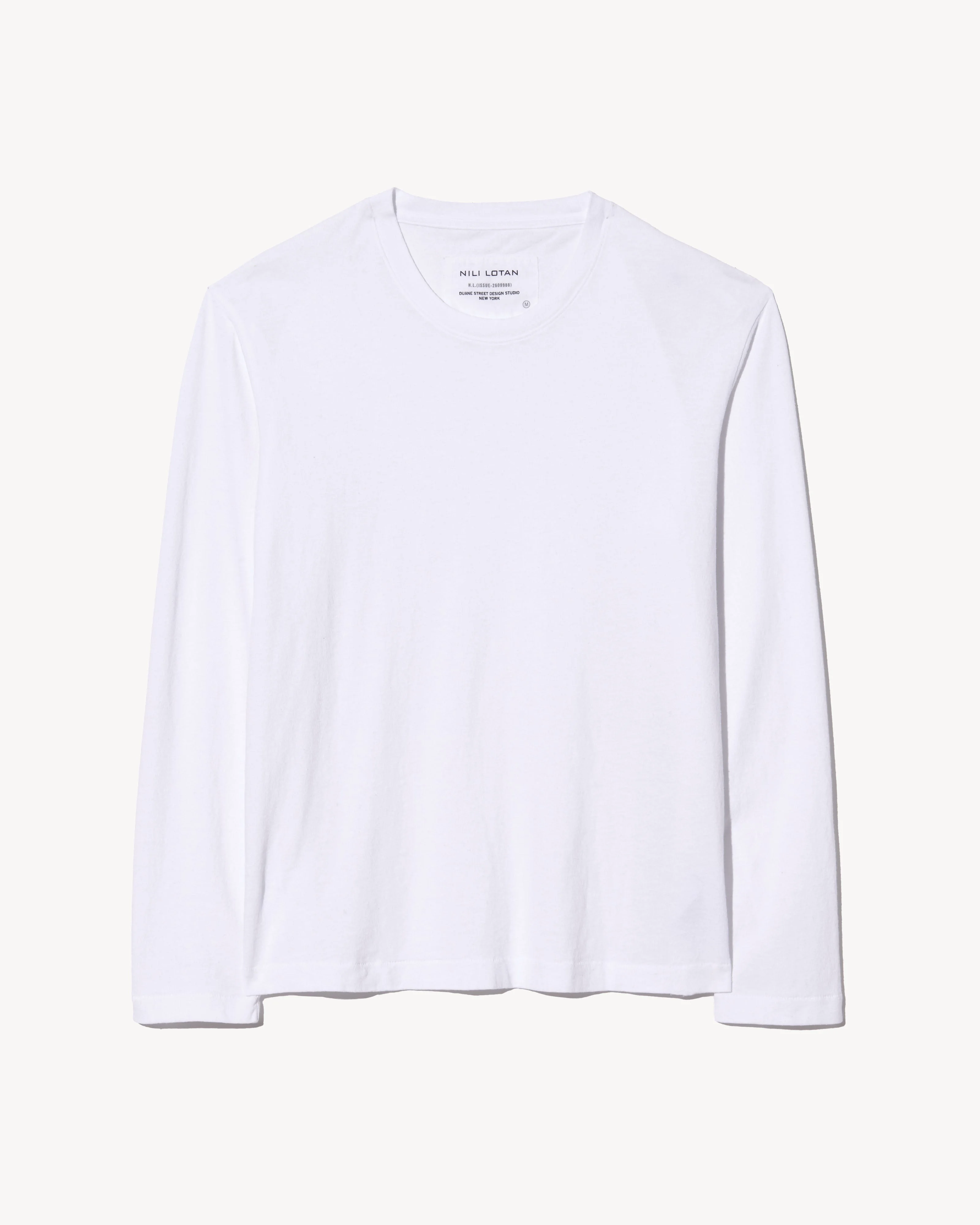 Relaxed fit long sleeve crew neck tee. Standard collar. Vintage pitch sleeve. COMPOSITION & CARE 100% Cotton Machine wash cold Do not bleach Tumble dry low Low iron Dry clean