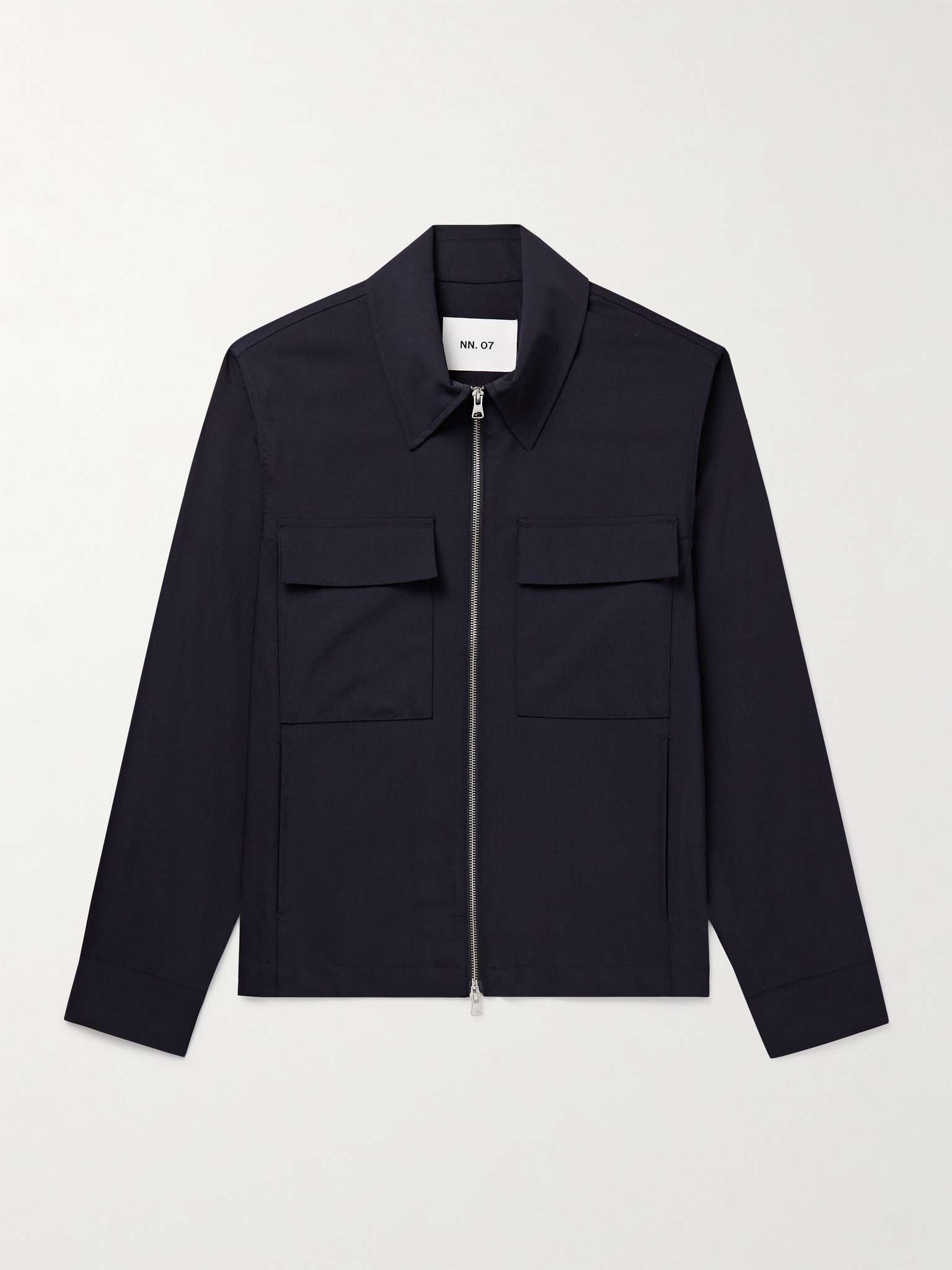 NN07 takes a pared-back approach to design, resulting in smart, versatile staples like this 'Alban 1468' overshirt. Cut for easy layering, it's made from a lightweight wool-blend and has four practical pockets inspired by workwear. Size & Fit - Fits true to size. Take your normal size - Designed for a regular fit - Lightweight, slightly stretchy fabric - Model is shown wearing a M - Model measures: chest 38"/ 96cm, height 6'2"/ 188cm Details & Care - Navy wool-blend - Two-way zip fastening - 87% wool, 8% polyamide, 5% elastane - Machine wash