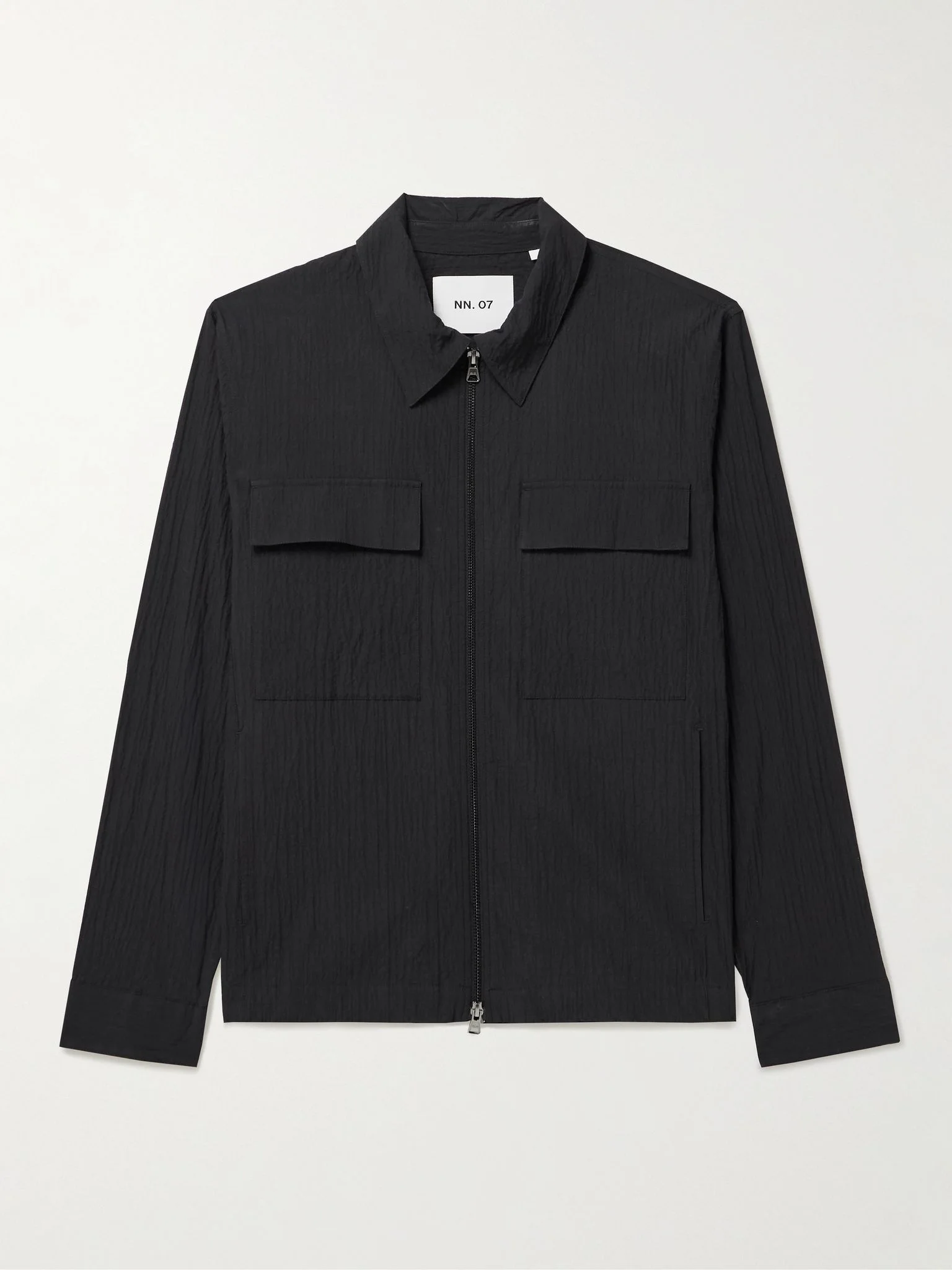 Drawing inspiration from workwear, NN07 designs smart, easy-to-style staples like this 'Alban 5721' jacket. It's made from organic cotton-blend seersucker and has four practical pockets. The relaxed cut allows plenty of room for layers underneath. Lower Impact Materials. This product is made using at least 50% lower-impact materials or ingredients. Find out more about our Consciously Crafted criteria here. Size & Fit - Fits true to size. Take your normal size - Designed for a regular fit - Mid-weight, non-stretchy fabric - Model is shown wearing a M - Model measures: chest 38"/ 96cm, height 6'2"/ 188cm Details & Care - Black organic cotton-blend seersucker - Two-way zip fastening - 98% organic cotton, 1% elastane, 1% polyamide
