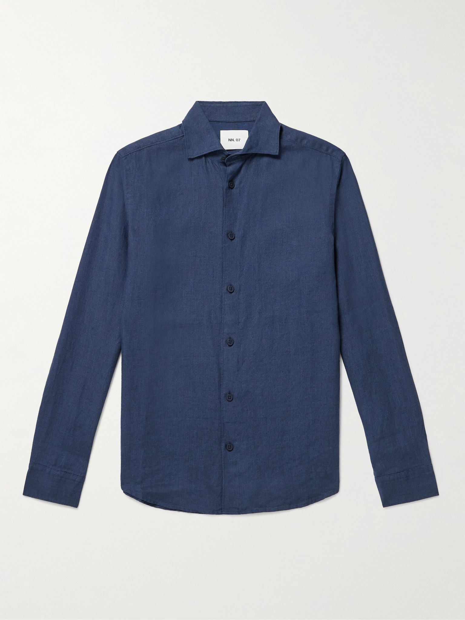 Focused on timelessness over trends, NN07 creates reliable basics that'll fill out your year-round wardrobe. This 'Andrew' shirt is cut from breathable linen and has a curved hem. Tonal buttons give it a clean finish. Size & Fit - Fits true to size. Take your normal size - Designed for a slightly loose fit - Lightweight, non-stretchy fabric - Model is shown wearing a M - Model measures: chest 38"/ 96cm, height 6'2"/ 188cm Details & Care - Navy linen - Button fastenings - 100% linen