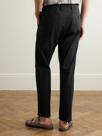 Mixing textures is a hack for creating a great outfit. NN07's 'Bill 5721' trousers are cut in a straight-leg profile from naturally tactile organic cotton-blend seersucker that's been treated for an even more crinkled finish. Style yours with knitwear and suede. Lower Impact Materials. This product is made using at least 50% lower-impact materials or ingredients. Find out more about our Consciously Crafted criteria here. Size & Fit - Fits true to size. Take your normal size - Regular-straight leg, mid-rise style - Mid-weight, non-stretchy fabric - Model is shown wearing a 32W 32L - Model measures: waist size 32, height 6'3"/ 191cm Details & Care - Black stretch organic cotton-blend seersucker - Hook, button and zip fastening - 98% organic cotton, 1% elastane, 1% polyamide