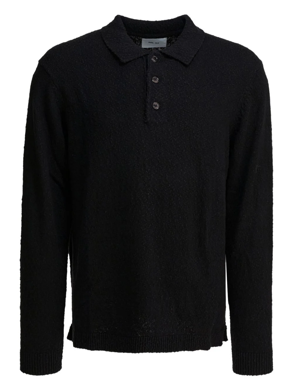 buttoned collar polo shirt Highlights - Black - Textured knit - Button fastening - Collar - Long sleeves - Straight hem Imported Composition Cotton 100% Washing instructions Read Manufacturer Guidelines