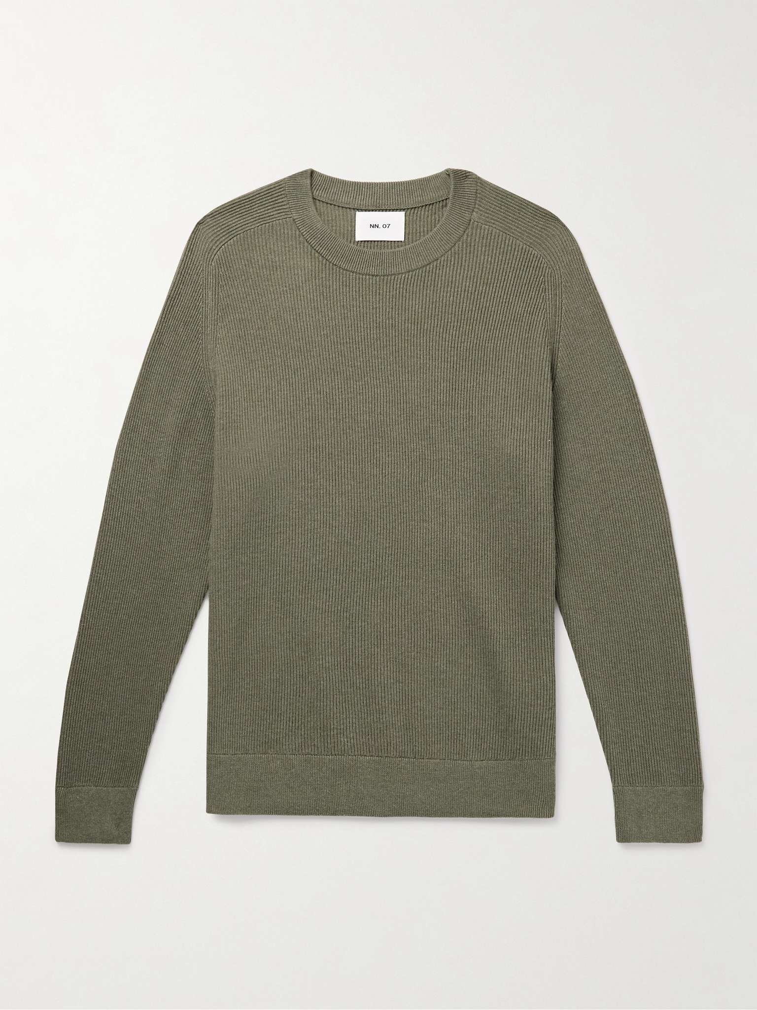 Versatility is at the core of NN07's design philosophy. Easy to wear with jeans or smarten up with tailoring, this 'Kevin 6600' sweater is rib-knitted from organic cotton and has classic saddle shoulders. Size & Fit - Fits true to size. Take your normal size - Designed for a slightly loose fit - Mid-weight knit - Model is shown wearing a M - Model measures: chest 38"/ 96cm Details & Care - Army-green organic cotton - 100% organic cotton - Machine wash or dry clean - Designer colour: Capers