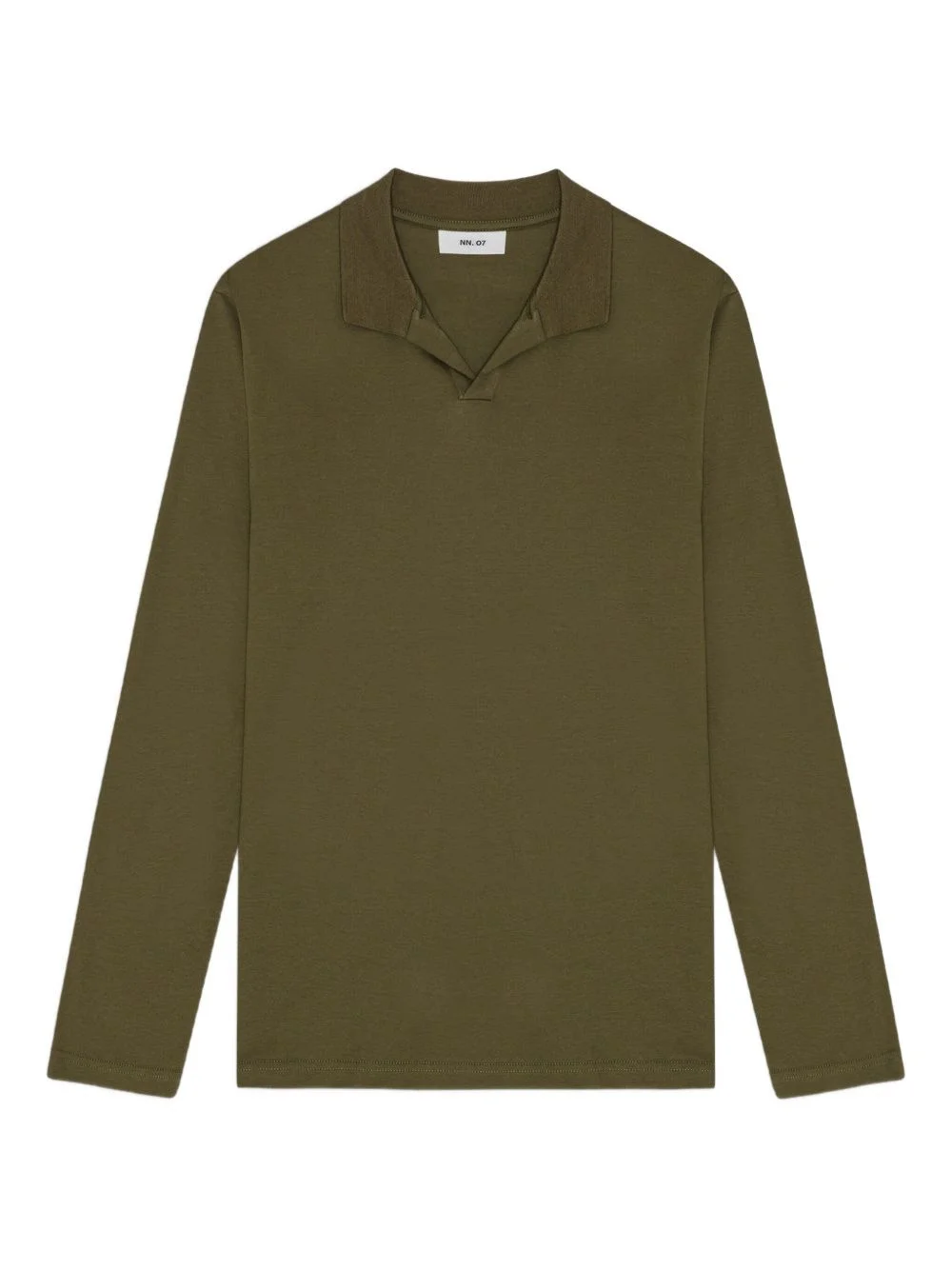 long-sleeve polo-collar t-shirt Highlights - Olive green - Long sleeves - Polo collar - Straight hem Imported Composition Organic Cotton 100% Washing instructions Read Manufacturer Guidelines
