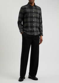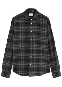 Info & Care NN.07 flannel shirt Checked, dropped shoulders, button-fastening cuffs, chest patch pocket, designer tag at side, curved hem, longer back hem Button-fastening through front; 100% cotton Machine wash; Size & Fit Length shoulder to hem front: 27 inches/68.5cm;;back: 30 inches/76.5cm; Midweight; Relaxed fit; Model is 6'3"/ 191cm, chest size 38 inches and wears a size medium
