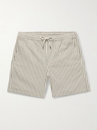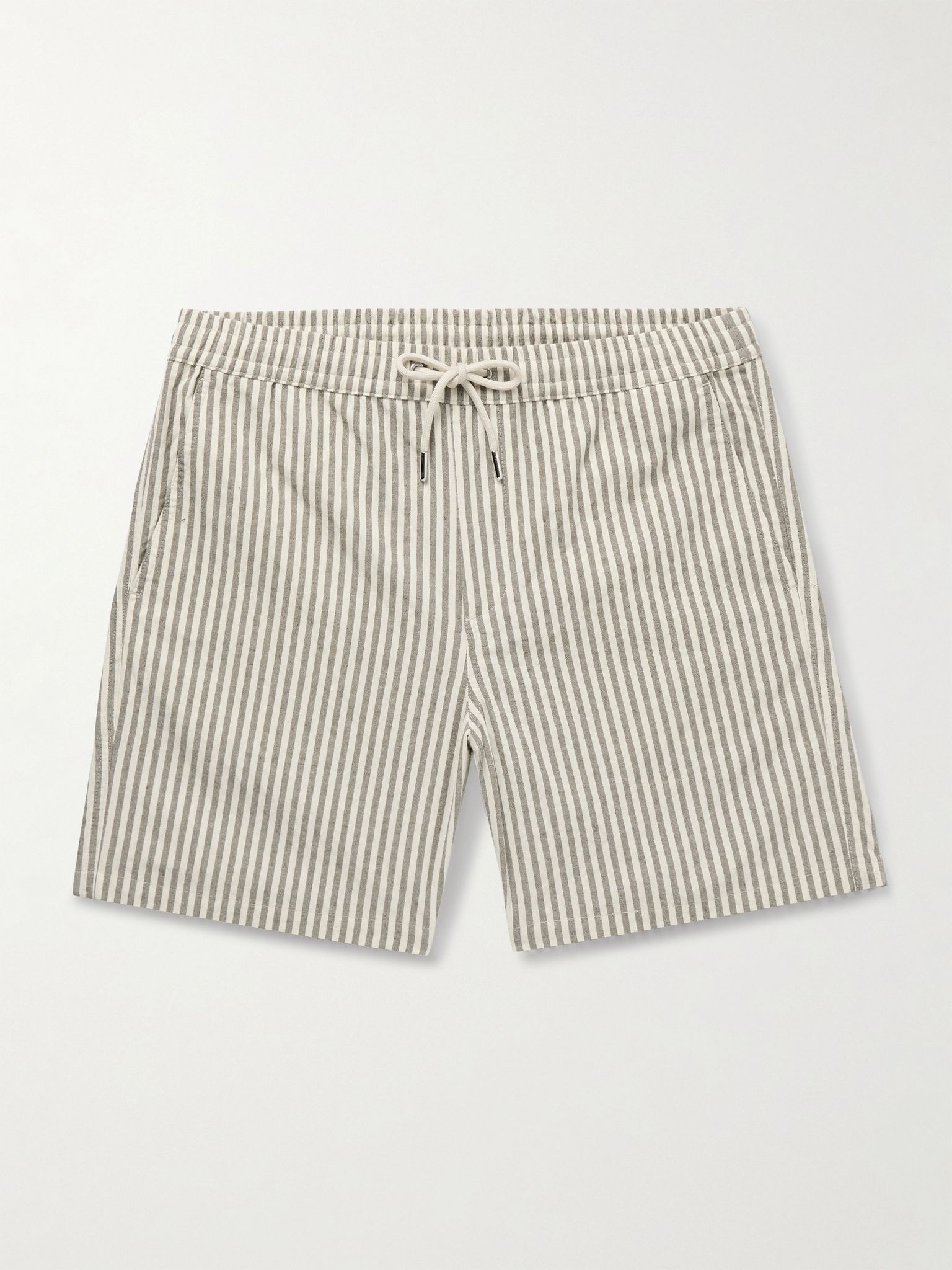 Gregor Straight-Leg Striped Cotton-Blend Drawstring Shorts Gray green
