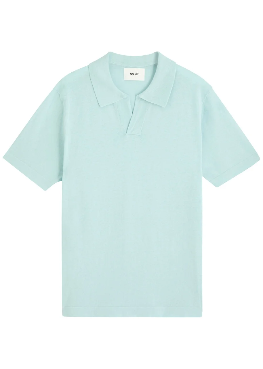 Info & Care NN.07 cotton-blend polo shirt Camp collar, designer tag at side, side splits at hem, ribbed trims Slips on 70% cotton, 30% linen Machine wash Size & Fit Length shoulder to hem: 26.5 inches/ 67cm Midweight Regular fit Model is 6'1"/ 185cm, chest size 38 inches and wears a size medium