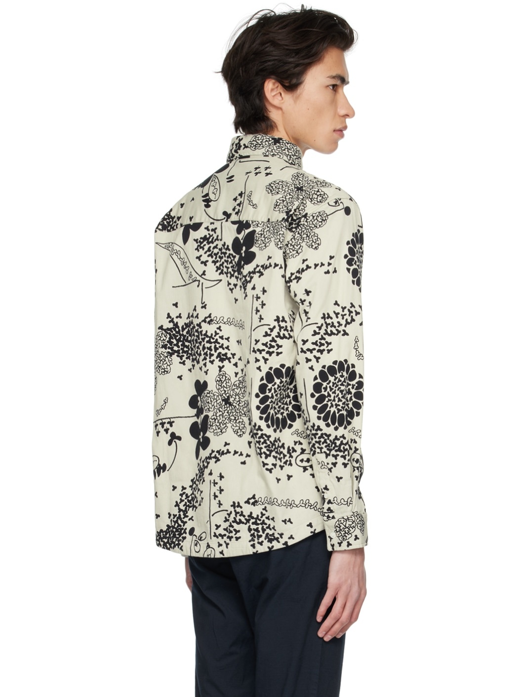Plain-woven stretch slub cotton and nylon-blend shirt. Jacquard graphic pattern throughout. · Spread collar · Button closure · Patch pocket · Logo flag at side seam · Single-button barrel cuffs Supplier color: Ecru multi