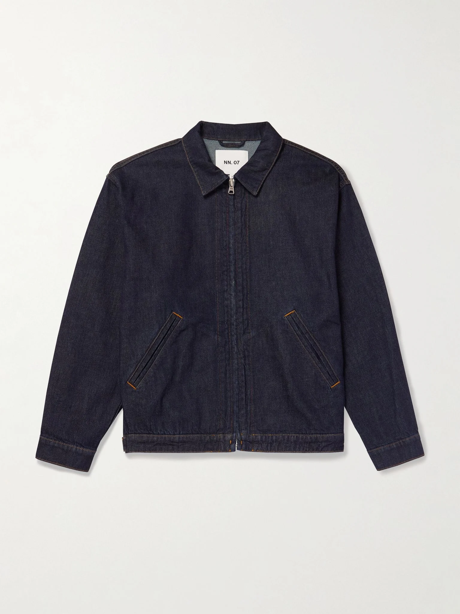 NN07's 'Petrus' jacket is cut from organic denim in a deep indigo wash and stitched with contrasting amber thread. It has slanted welt pockets and a zip fastening instead of a traditional buttoned placket. Complete the look with selvedge jeans and penny loafers. Size & Fit - Fits true to size. Take your normal size - Designed for a regular fit - Mid-weight, non-stretchy fabric - Model is shown wearing a M - Model measures: chest 38"/ 96cm, height 6'3"/ 191cm Details & Care - Indigo organic denim - Zip fastening - 100% organic cotton