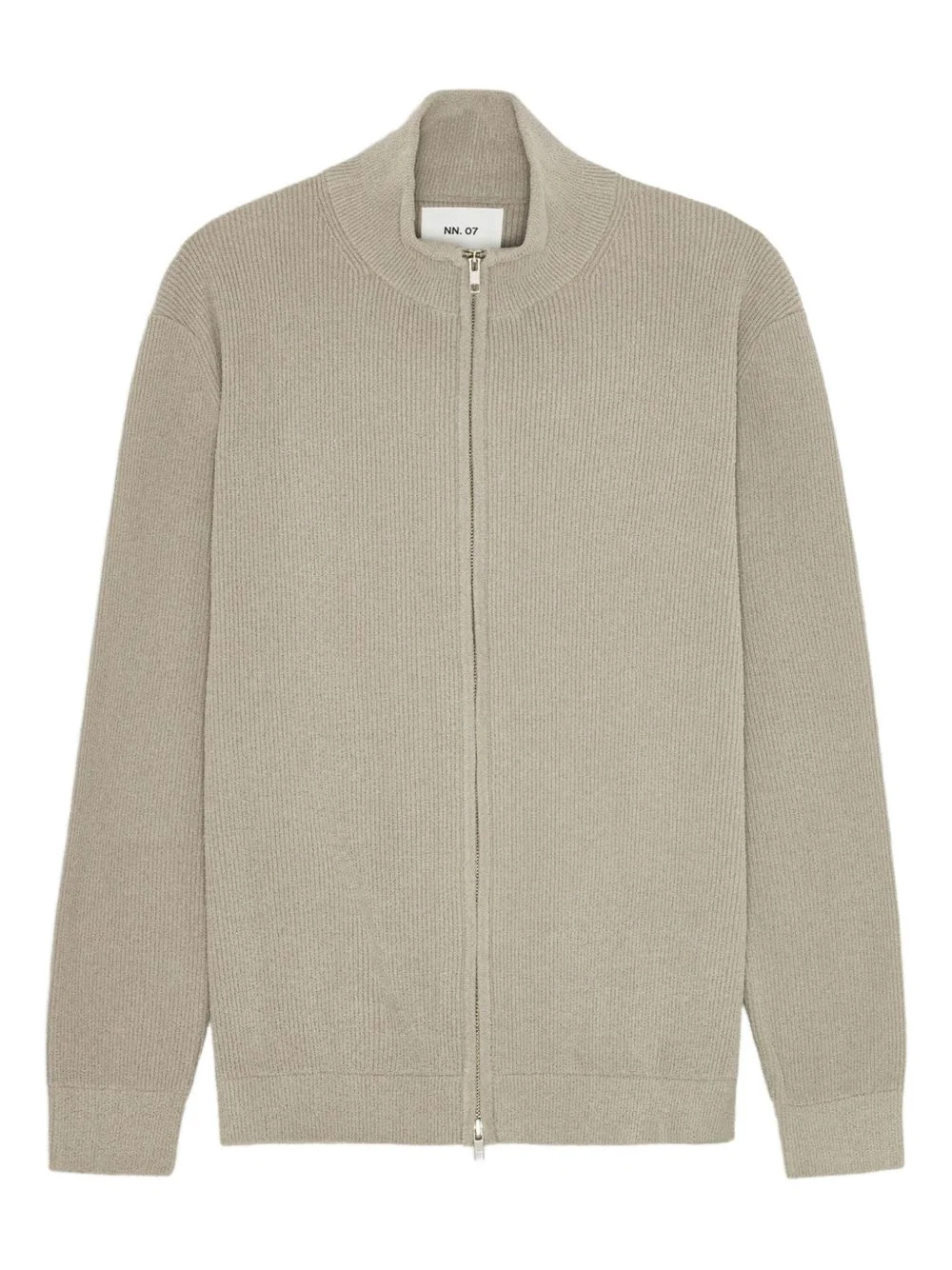 ribbed zip-up cardigan Highlights - Beige - Ribbed texture - Full zip fastening - High neck - Long sleeves - Straight hem Imported Composition Polyester 78%, Polyamide 22% Washing instructions Read Manufacturer Guidelines