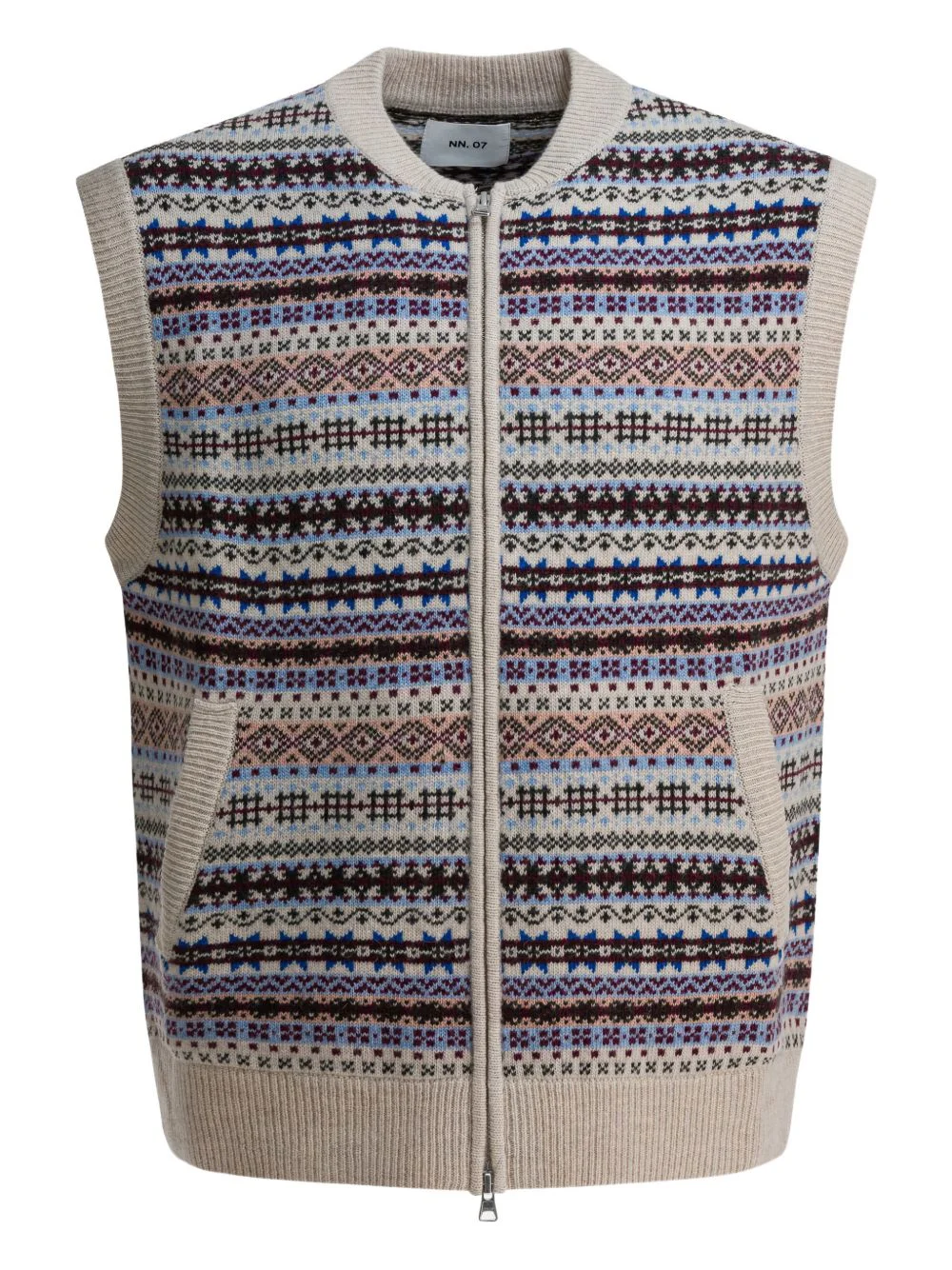 Roobie zip-up vest Highlights - Beige - Fair isle knit - Zip fastening - Sleeveless - Ribbed hem Imported Composition Wool 80%, Recycled Polyester 20% Washing instructions Read Manufacturer Guidelines