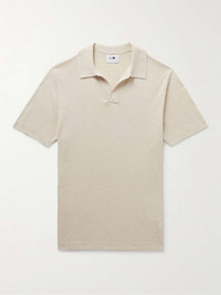 NN07's 'Ryan 6311' polo shirt is designed for laid-back days, whether you're off on holiday or just hanging out. It's made from an Italian cotton and linen-blend that's lightweight and breathable and has an open collar that complements the relaxed cut. Size & Fit - Fits true to size. Take your normal size - Designed for a relaxed fit - Lightweight knit - Model is shown wearing a M - Model measures: chest 38"/ 96cm Details & Care - Beige cotton and linen-blend - 70% cotton, 30% linen - Machine wash