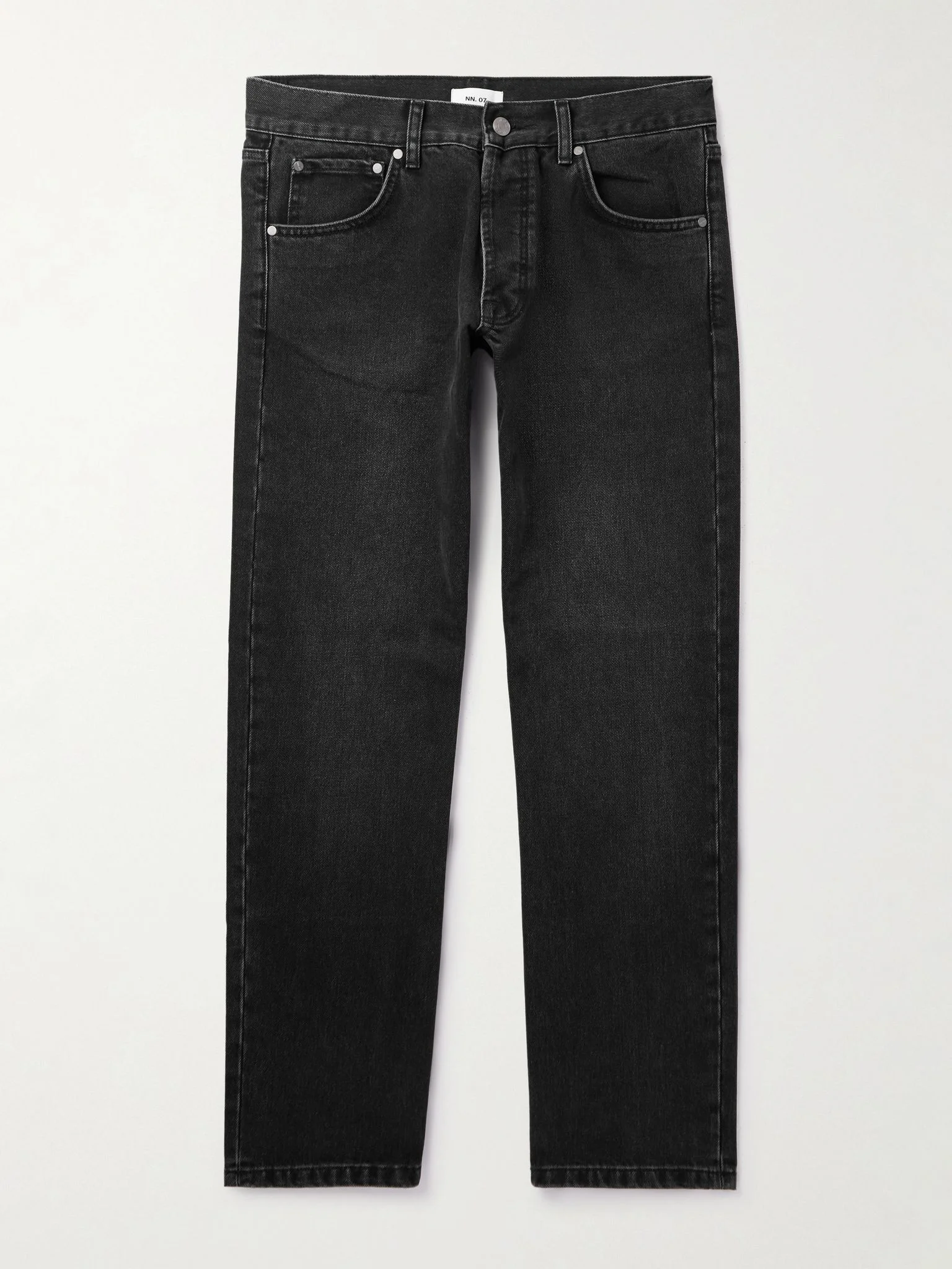 For its last few collections, NN07 has been on a European tour, from its home in Copenhagen to the streets of Milan. FW25 takes the label to Paris, with a focus on the easy-going silhouettes you'd find throughout the capital. These straight-cut 'Sonny 1866' jeans are made from 13.5 oz denim that's sulfur-dyed for a worn-in look and feel and finished with silver-tone rivets at the front and back. Size & Fit - Fits true to size. Take your normal size - Relaxed-straight leg, mid-rise trousers - Mid-weight, non-stretchy fabric - Model is shown wearing a 32 - Model measures: waist size 30, height 6'2"/ 188cm Details & Care - Black denim - Button fastenings - 98% cotton, 2% elastane - Machine wash