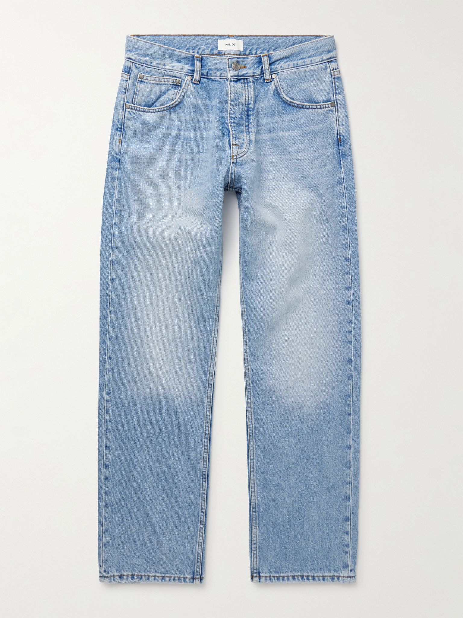 NN07's 'Sonny 1882' jeans are made from cotton that's organically grown without the use of pesticides or synthetic fertilisers. They're cut in a relaxed shape with straight legs and finished with the brand's leather patch on the back waistband. Team yours with loafers and one of the brand's shirts or cardigans. Lower Impact Materials. This product is made using at least 50% lower-impact materials or ingredients. Find out more about our Consciously Crafted criteria here. Size & Fit - Fits true to size. Take your normal size - Relaxed-straight leg, mid-rise style - Mid-weight, non-stretchy fabric - Model is shown wearing a 32W 32L - Model measures: waist size 32, height 6'1"/ 185cm Details & Care - Light-blue organic denim - Button fastenings - 100% organic cotton - Machine wash