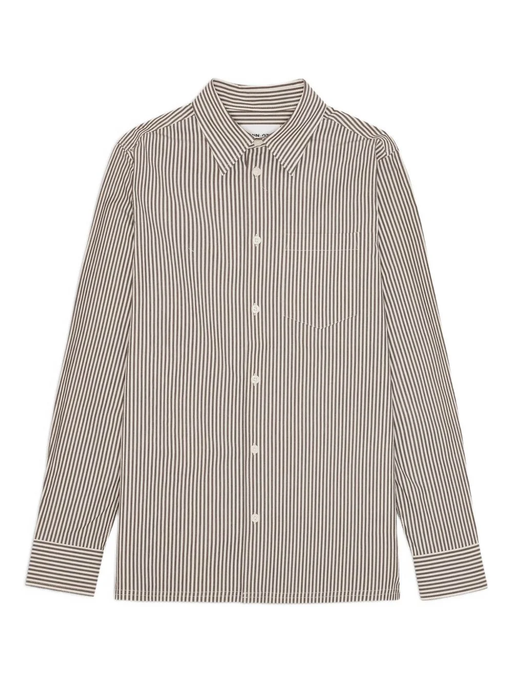 striped long-sleeve shirt Highlights - Brown - Vertical stripes - Button fastening - Long sleeves - Classic collar - Chest pocket Imported Composition Organic Cotton 100% Washing instructions Read Manufacturer Guidelines